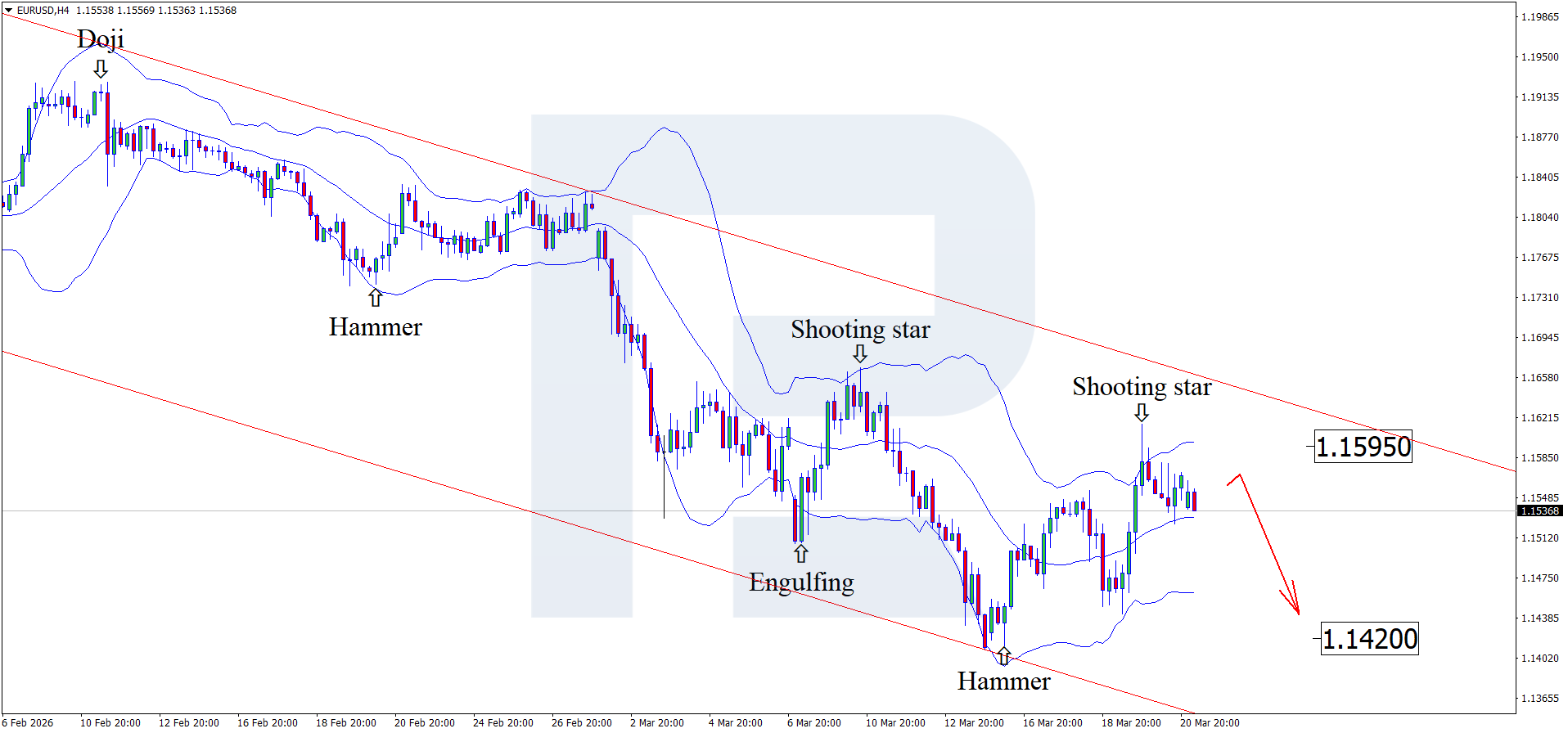 Geopolitical conflicts continue to support the USD, pushing the EURUSD pair further down. The rate currently stands at 1.1535. Find more details in our analysis for 23 March 2026.