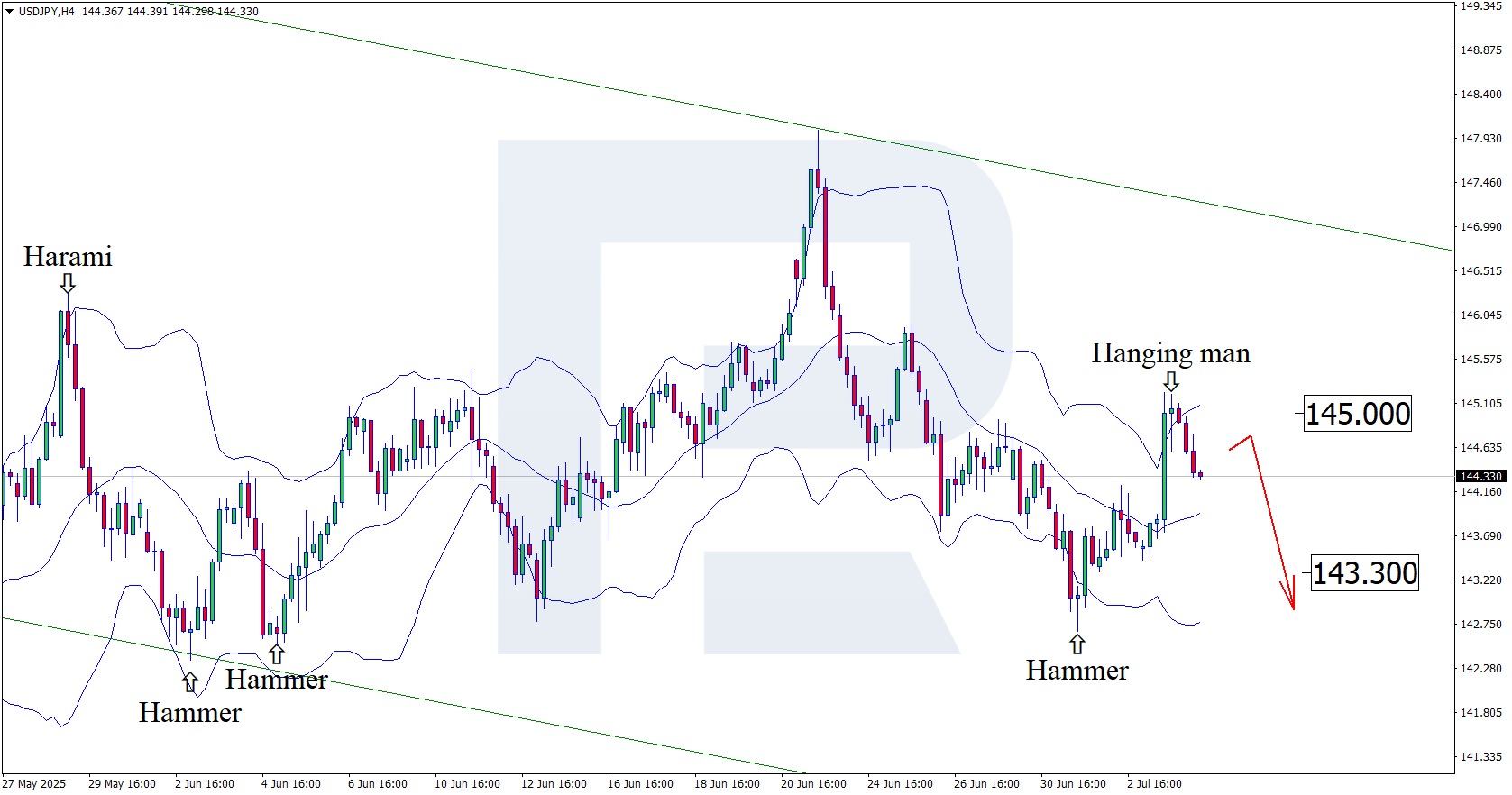 Amid Japan’s economic data, the USDJPY rate may form a downward wave towards 143.30. Details – in our analysis for 4 July 2025.