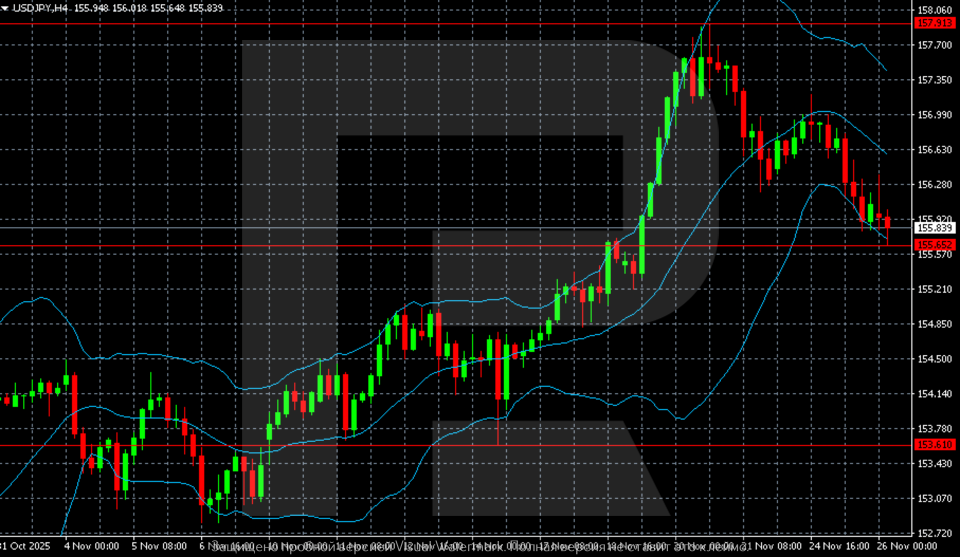 The USDJPY pair is correcting, but its short-term outlook remains mixed. The USDJPY forecast for today, 26 November 2025, suggests a decline towards 155.65.