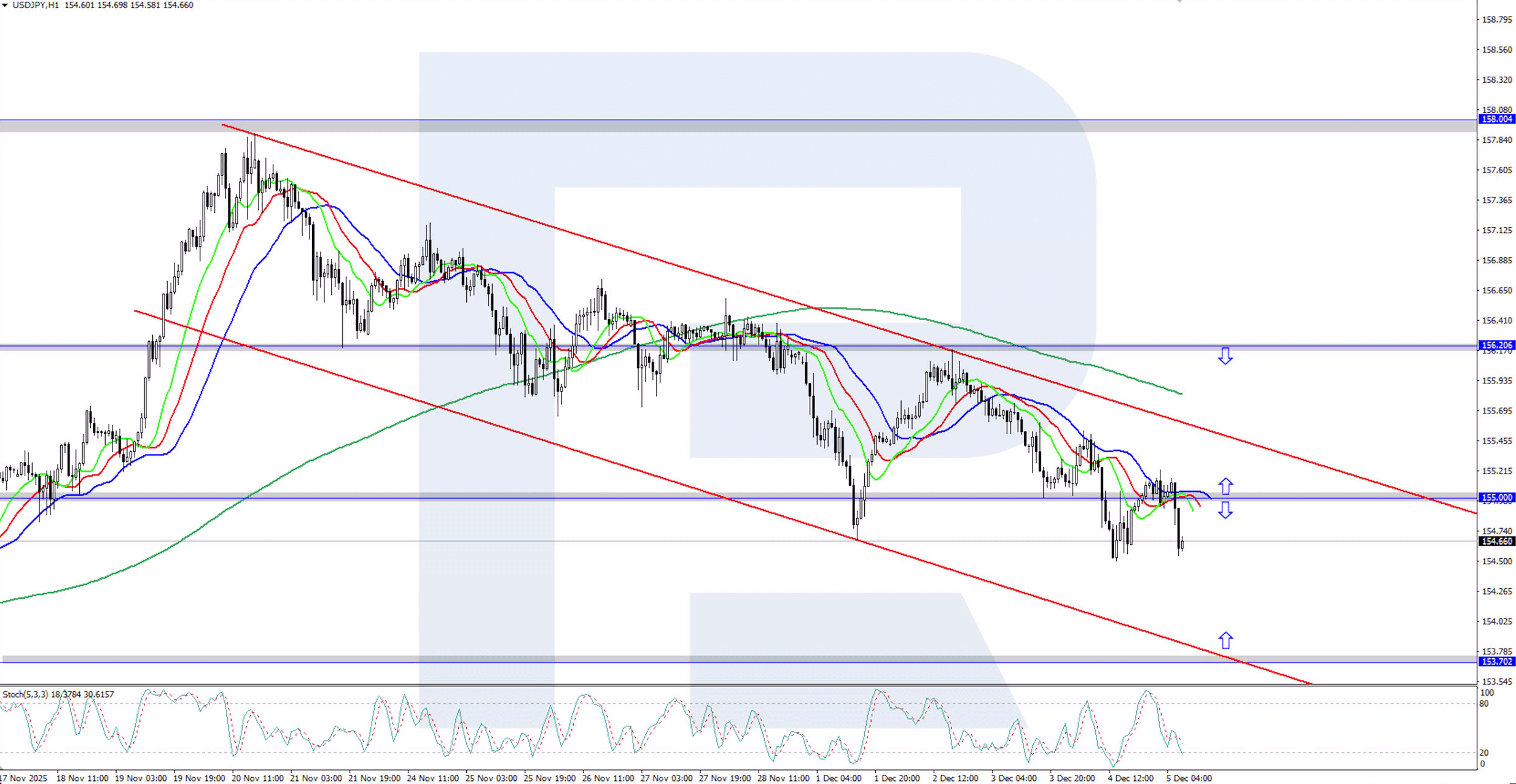 The USDJPY rate is moving lower, falling below 155.00 amid expectations that the Bank of Japan may raise interest rates at its December meeting. The market is awaiting US inflation data today. Find out more in our analysis for 5 December 2025.