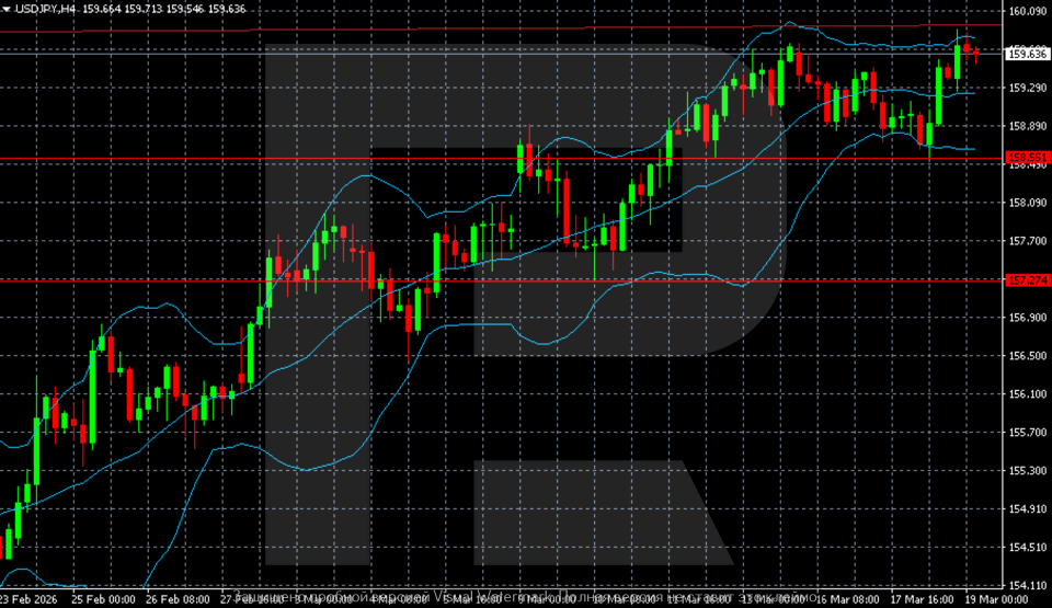 The USDJPY pair may quickly return to 160.00. The focus is on the Bank of Japan’s decision and the Middle East. Discover more in our analysis for 19 March 2026.