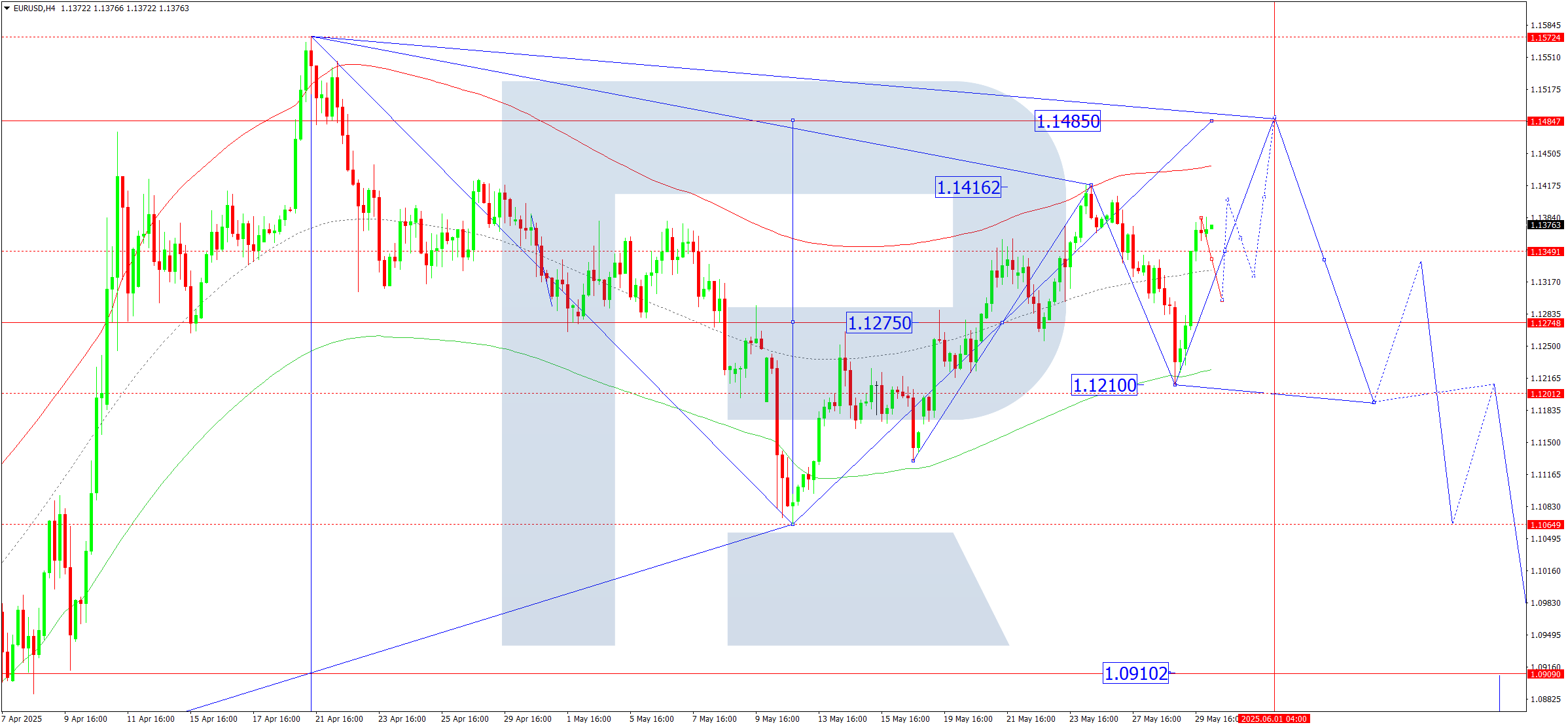 On the H4 chart of EURUSD, the market recently completed an upward wave to 1.1389. Today, 30 May 2025, a consolidation range is expected to form below this level. A possible scenario involves a pullback to 1.1290 followed by a rise to 1.1400. A breakout above the range could lead to a continuation of the wave to 1.1485. If the market breaks downwards, a decline to 1.1210 and further to 1.0910 may follow. This is the local target.