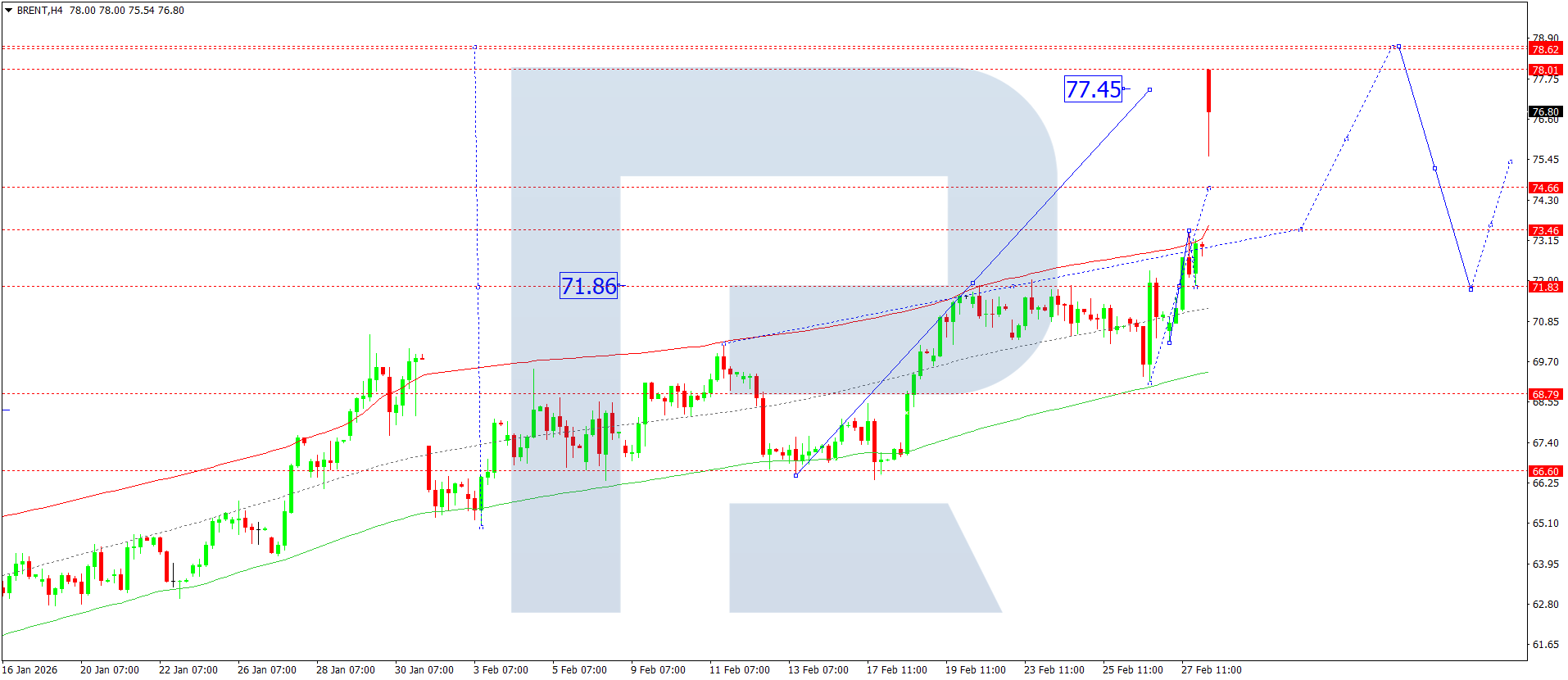 Technical indicators for today’s Brent forecast suggest potential growth to 78.60.