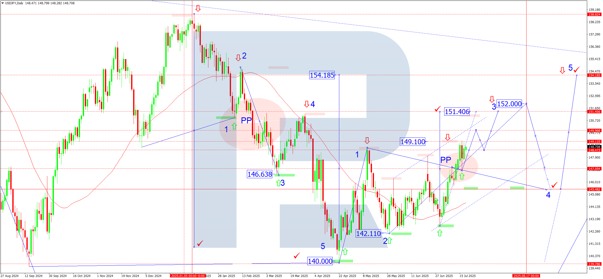 The USDJPY pair remains sensitive to US Treasury yields and Federal Reserve policy. The bullish momentum continues but approaches a critical 151.40-152.00 zone, where a reversal may occur. Fundamentals still favour the USD.