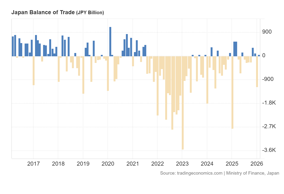 The current reading is generally positive for the Japanese stock market, as the actual trade balance figure turned out to be significantly better than the forecast: instead of the expected deficit, a surplus was recorded. This means Japan’s external trade position improved noticeably during the reporting period, so the market receives a signal that the export sector, industrial production, and external demand are in a more resilient state than previously expected.