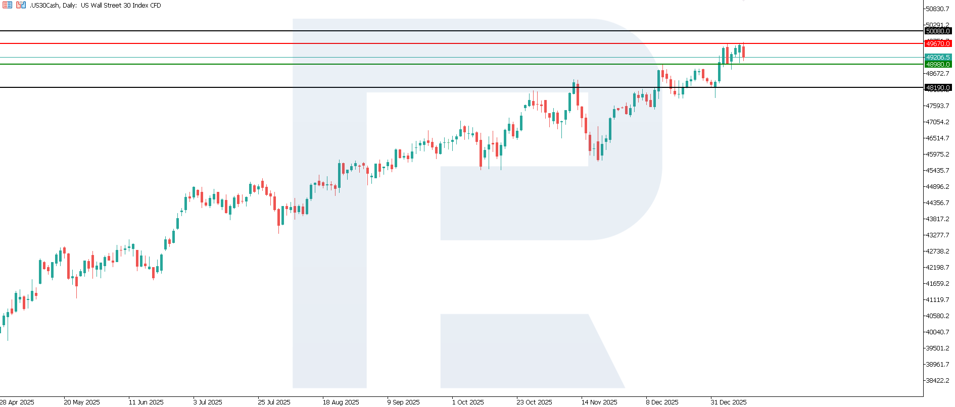 For the US 30 index, the impact is typically moderate. Companies within the index are, on average, less sensitive to valuation changes driven by interest rate expectations than high-growth technology stocks, but they do depend on stable consumer demand and the absence of a sharp tightening in credit conditions. Lower-than-expected core inflation supports precisely this scenario: the economy does not appear overheated, and the regulator gains more room for softer policy decisions in the future.