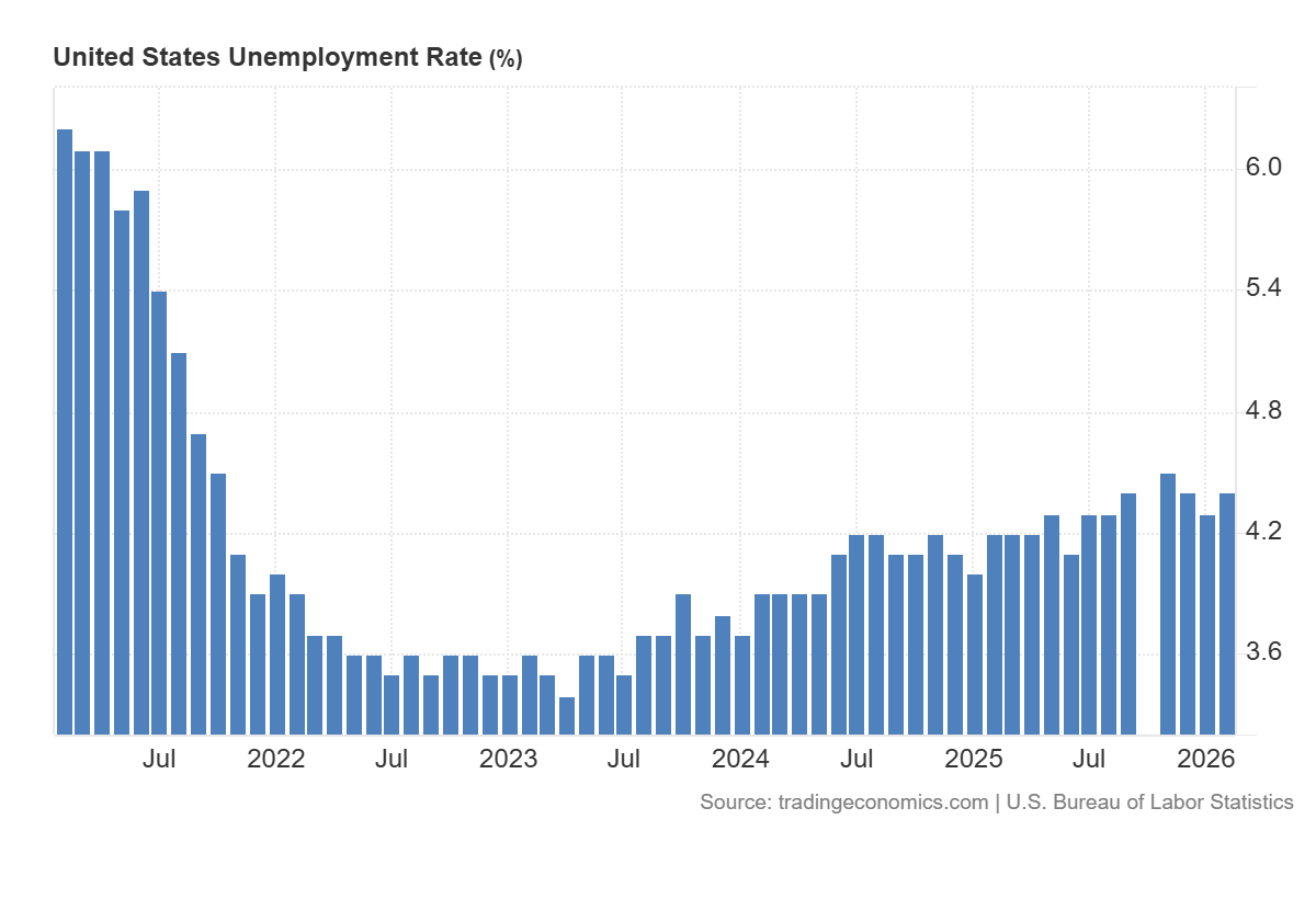 The release of the US unemployment rate at 4.4%, above a 4.3% forecast and the previous figure of 4.3%, indicates a slight deterioration in labour market conditions. Although the change is relatively modest, such data traditionally attracts increased attention from financial market participants, as the labour market is one of the key indicators of the US economy’s health.