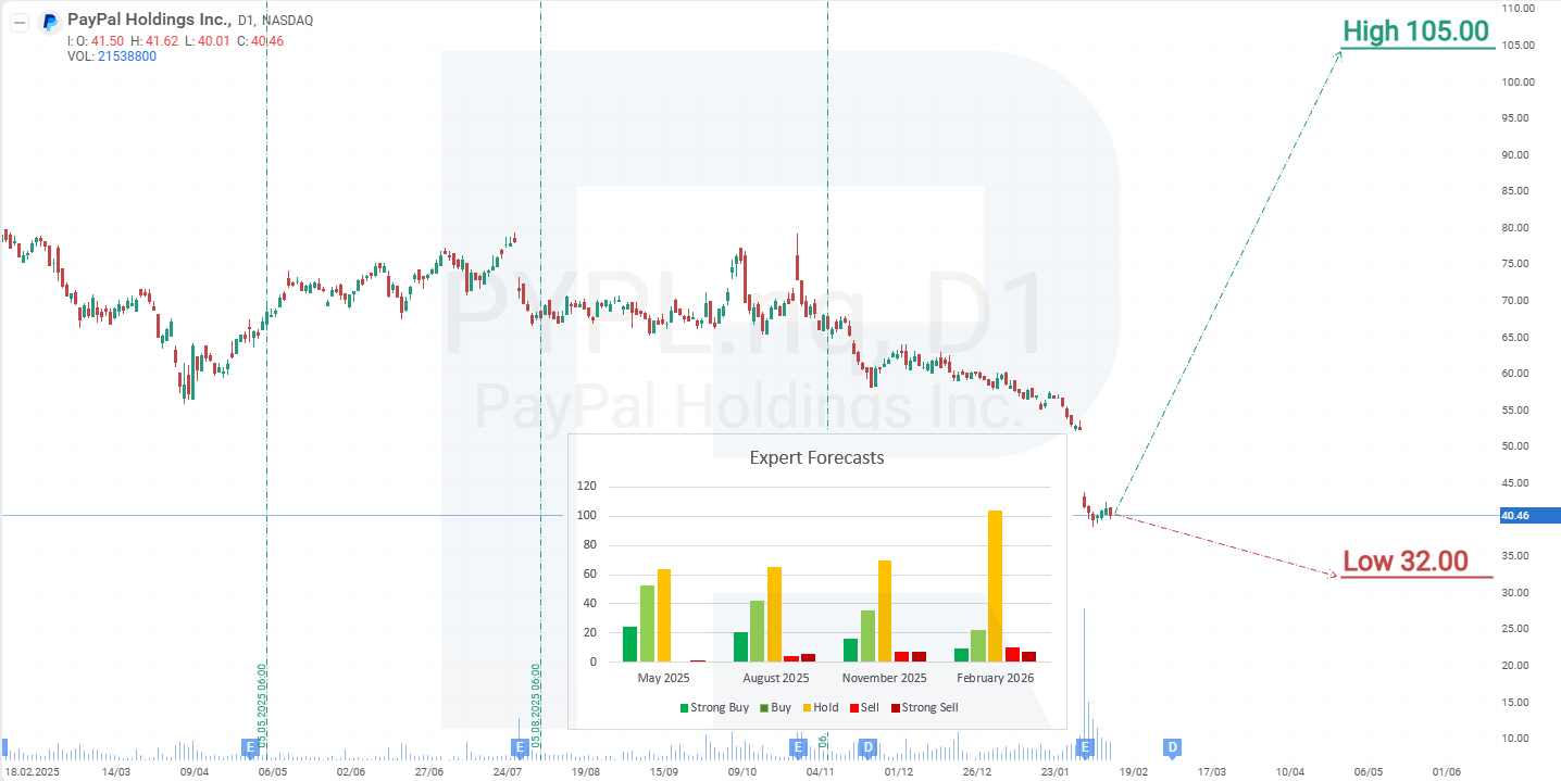 PayPal Holdings, Inc. stock analysis and forecast for 2026Forecasts presented in this section only reflect the author’s private opinion and should not be considered as guidance for trading. RoboForex bears no responsibility for trading results based on trading recommendations described in these analytical reviews.