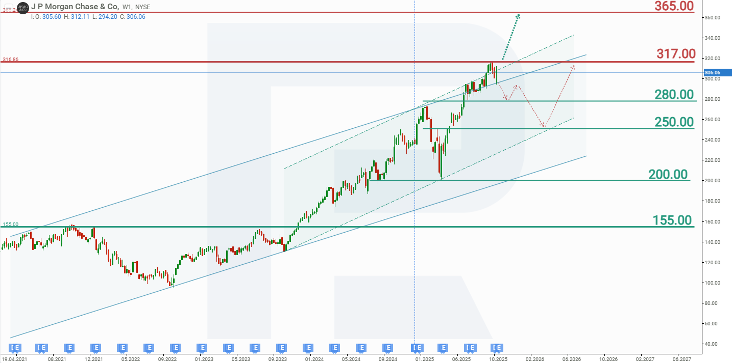 This article covers JPMorgan Chase & Co., providing a fundamental analysis of JPM stock and an overview of key metrics from Q3 and Q4 2024 as well as Q1–Q3 2025, enabling comparison across periods. Based on the observed dynamics of JPMorgan Chase & Co.’s share performance, a technical analysis of JPM is also presented, forming the basis for the JPMorgan Chase & Co. stock forecast for 2025.