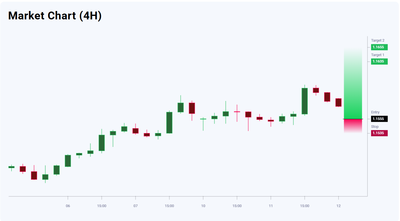 Market sentiment for EURUSD shows a bearish bias – 66% vs 34%. The risk-to-reward ratio is 1:5. Potential profit is 80 pips at the first take-profit target and 100 pips at the second, while possible losses are limited to 20 pips.