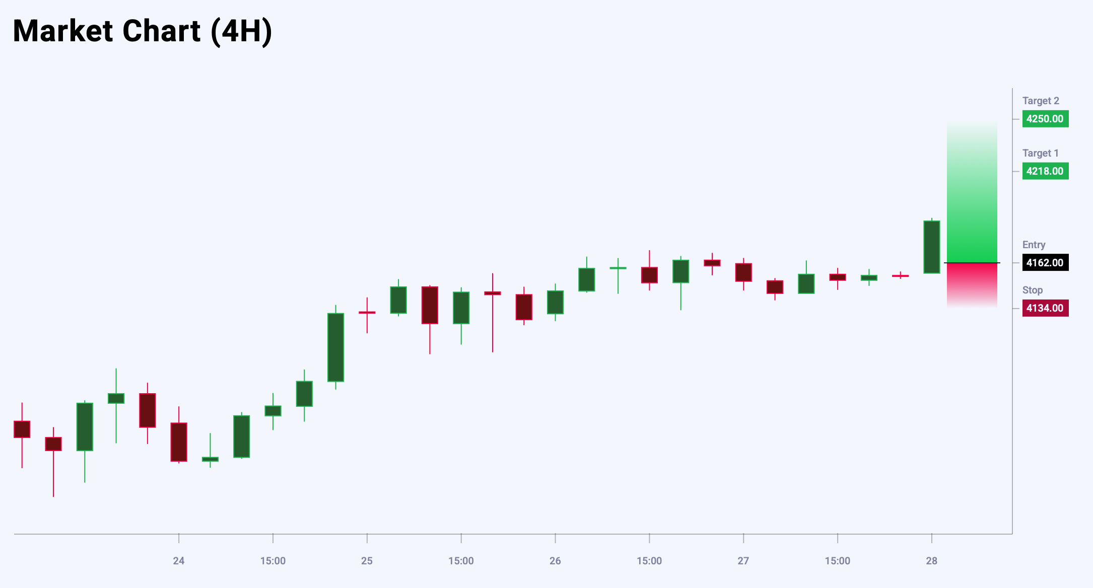 XAUUSD prices continue their upward movement from the 4,142 USD level, with active buying observed during the Asian session. The instrument is currently in overbought territory. The key resistance area based on Fibonacci levels is located at 4,218 USD. Further growth is expected, and opening long positions at the beginning of the trading session is considered the optimal strategy. Today’s XAUUSD trade idea suggests placing a pending Buy Limit order.