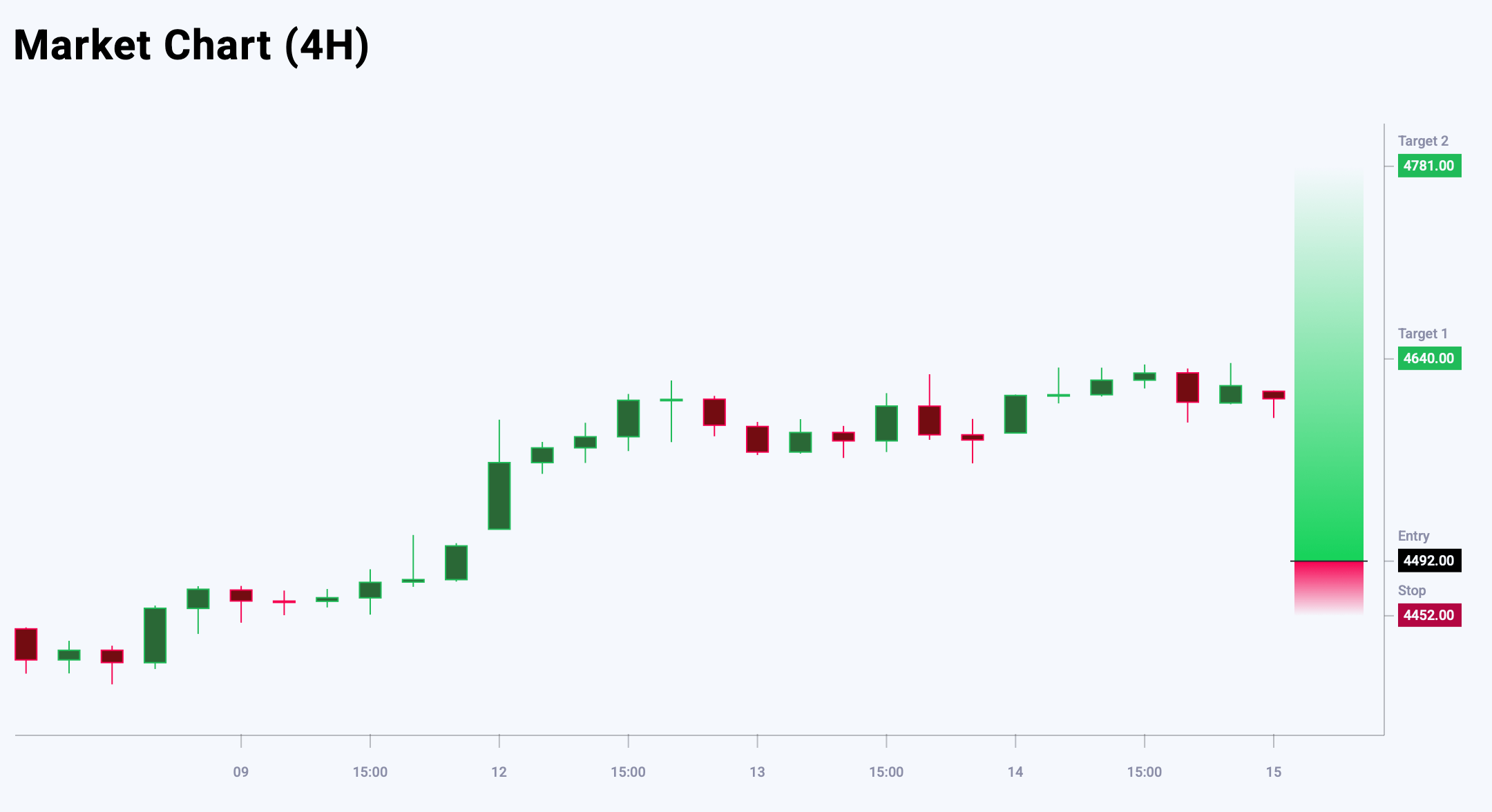 Market sentiment for XAUUSD shows a bullish bias – 52% versus 48%. The risk-to-reward ratio is 1:3. Potential profit is 14,800 pips at the first take-profit level and 28,900 pips at the second, with possible losses capped at 4,000 pips.