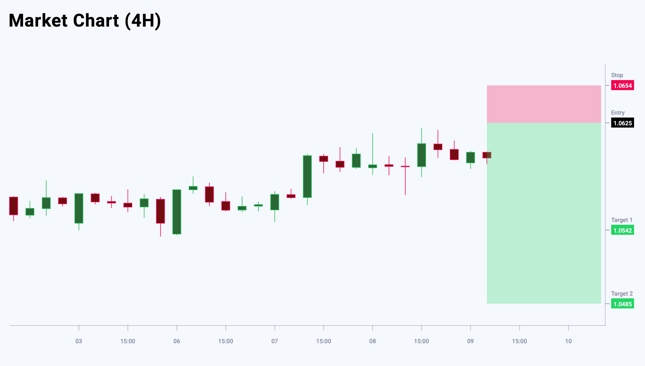 The news background for GBPCHF shows balanced sentiment – 50% vs 50%. The risk-to-reward ratio exceeds 1:4. The potential profit is 83 pips at the first take-profit level and 140 pips at the second, with potential losses capped at 29 pips.