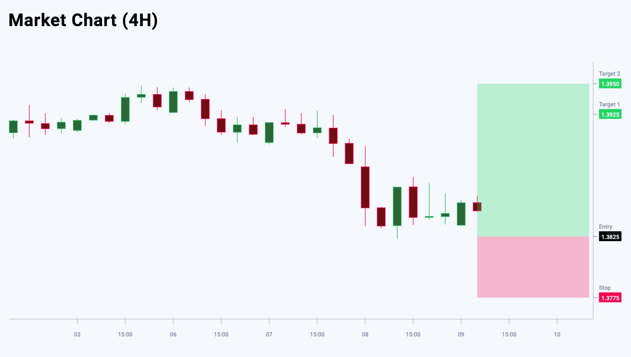 The current price action in USDCAD does not provide clear signals that the uptrend has ended, despite the ongoing correction. Buyers remain in control, keeping the overall bias bullish. At the same time, the risk of a deeper corrective pullback remains. Current levels appear unattractive in terms of a risk-to-reward ratio, so opening long positions at this stage is not advisable. A sustained move above 1.3875 would confirm strengthening bullish momentum, with the next upside target at 1.3950. Today’s USDCAD trade idea suggests placing a pending Buy Limit order.